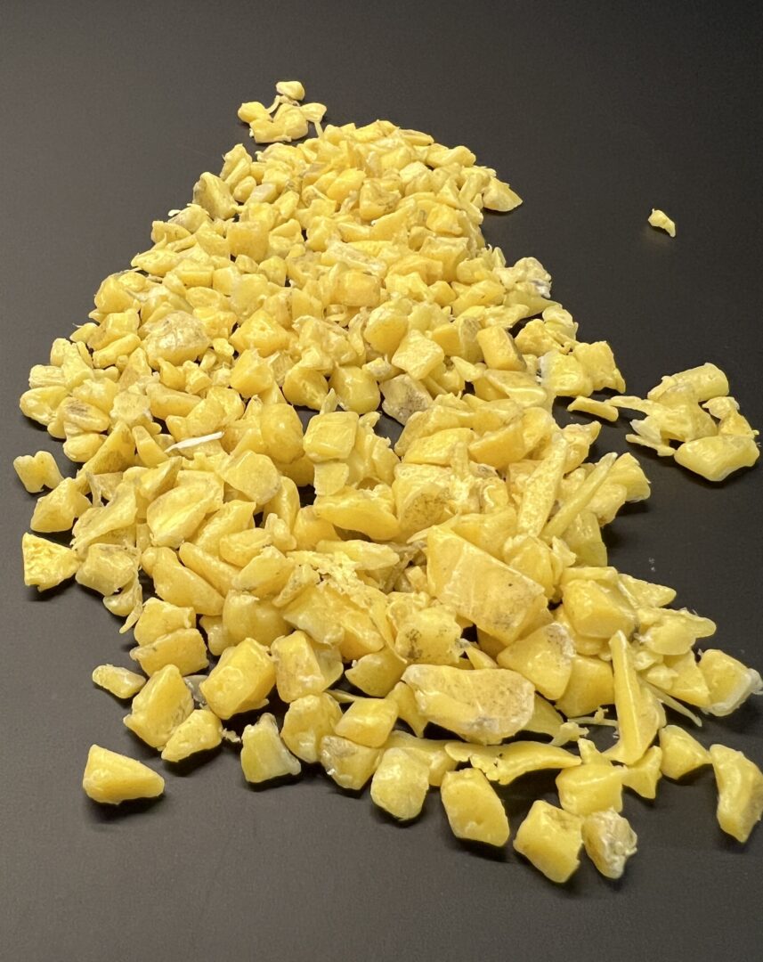 These HDPE flakes are produced from recycled plastic boxes that have been thoroughly washed and cleaned. The material features a uniform yellow colour with good purity and consistent flake size.
